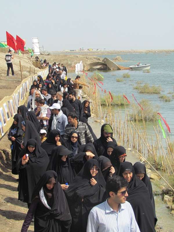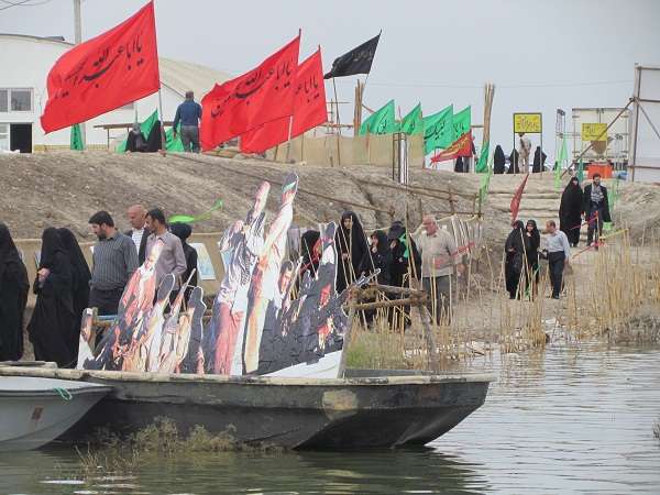 در مسیر حرکت به سمت مقتل شهید علی هاشمی نمایشگاه گیسوان آشفته مجنون که در ساحل هور بر پا شده با عکس های خاص از طبیعت هور و ابدان مطهر شهدای تفحص شده در هور تو را به سمت مقتل شهید بدرقه می کند.