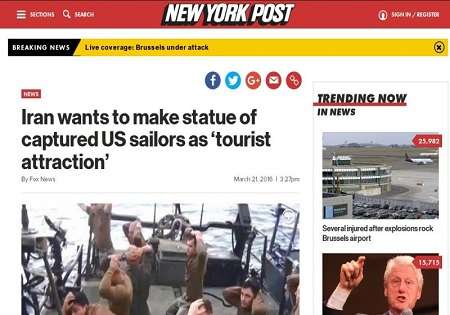 واکنش رسانه‌های آمریکایی به تصمیم سپاه/ «مجسمه ملوان‌های آمریکایی، جاذبه گردشگری در ایران»